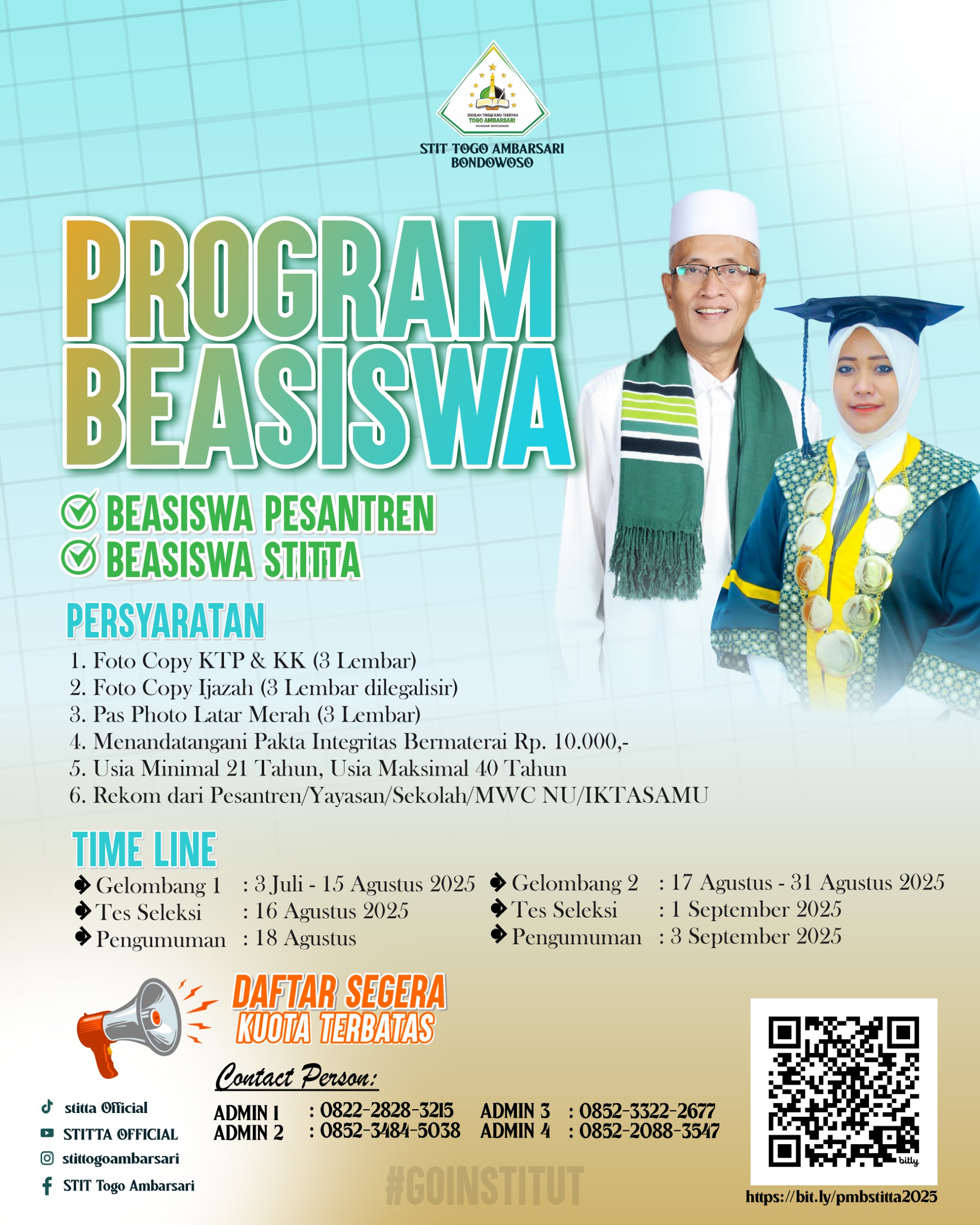 "Mulailah perjalananmu bersama kami. Pendidikan adalah bidang yang dinamis dan terus berkembang, memiliki peran penting dalam membentuk individu dan masyarakat. Meski menghadapi berbagai tantangan, saya percaya belajar di institusi ini membantu kami mengatasinya dan tumbuh menjadi pribadi yang lebih kuat setiap harinya."